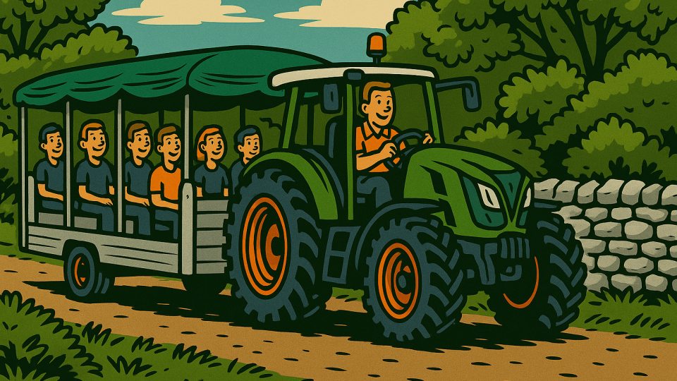 L'Agribus è stato il primo rimorchio agricolo adibito al trasporto delle persone nel territorio e viene usato per accompagnare i visitatori all'ingresso della grotta.